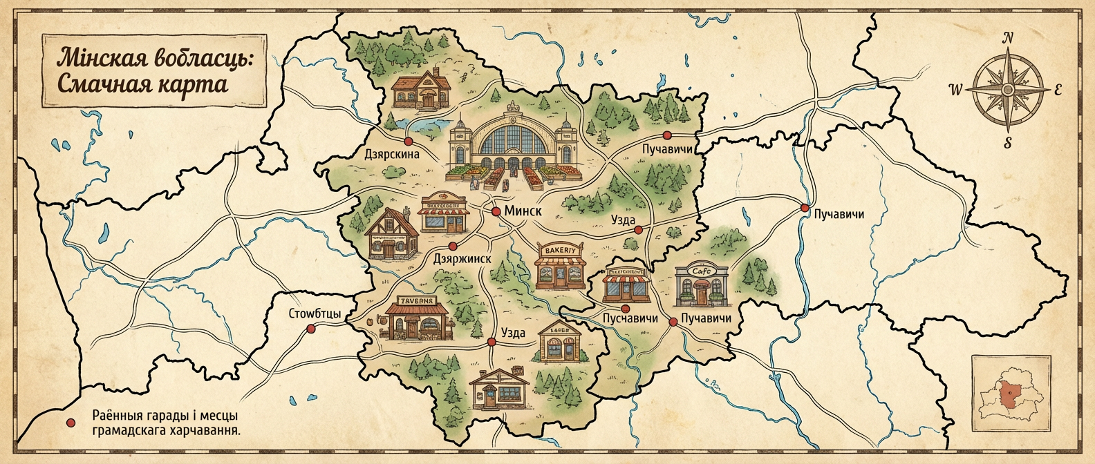 Общественное питание является одним из ключевых направлений деятельности Минского областного союза потребительских обществ — многоотраслевой структуры, обслуживающей население Минской области. Сеть заведений сочетает в себе богатые традиции, акцент на белорусскую национальную кухню и современные подходы к организации сервиса.